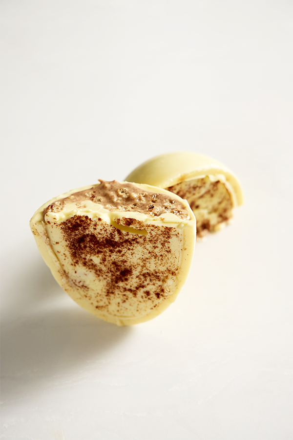 A creamy Easter treat inspired by the comforting flavours of traditional Greek rizogalo. This smooth white chocolate egg is filled with a delicate centre reminiscent of the classic rice pudding dessert — gently sweet, with notes of vanilla and cinnamon. Soft, nostalgic, and beautifully indulgent, it’s a unique Easter creation perfect for gifting or sharing with those who appreciate something a little different.