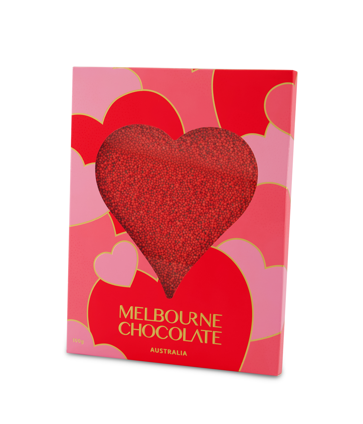 This heart-shaped milk chocolate is smooth, creamy, and finished with playful pink speckles for a little crunch and a lot of charm. Sweet, nostalgic, and designed to delight, it’s the perfect way to say I love you, I’m thinking of you, or this one’s for me.